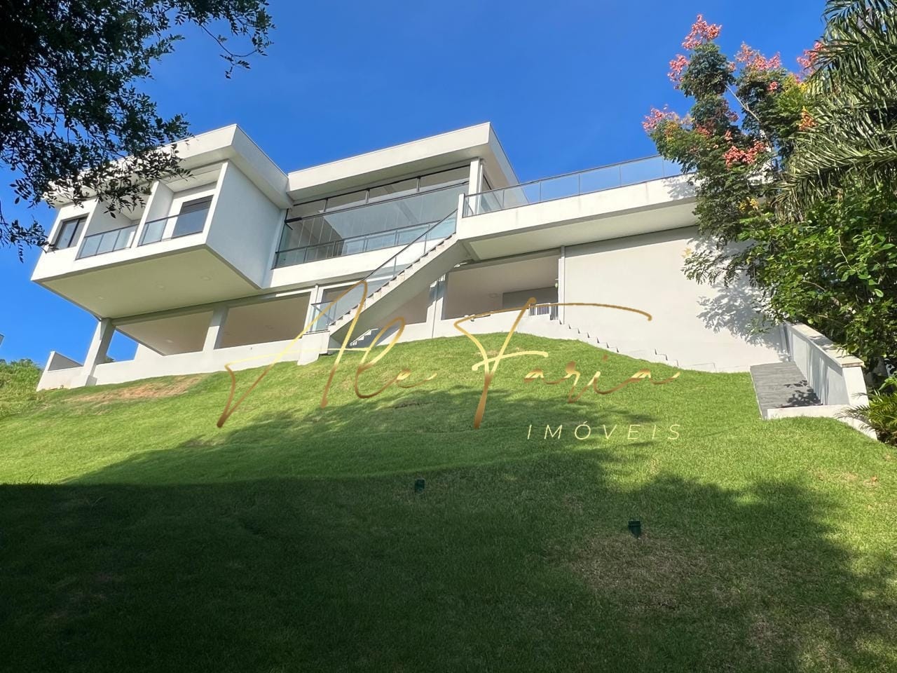 Terreno de 1.535 m² e 572 m² construídos, com 5 suítes, sala integrada à cozinha gourmet,